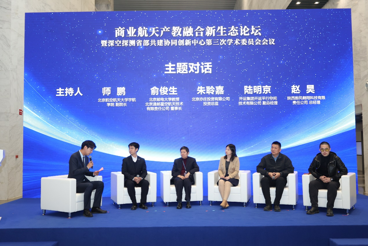 主题对话环节,来自高校、企业和金融机构的代表围绕“十五五”期间商业航天产教融合的“平台升级”与创新共同体构建,对“校热企冷”、产业前沿衔接、技术成果转化、企业人才培养创新等深入研讨。