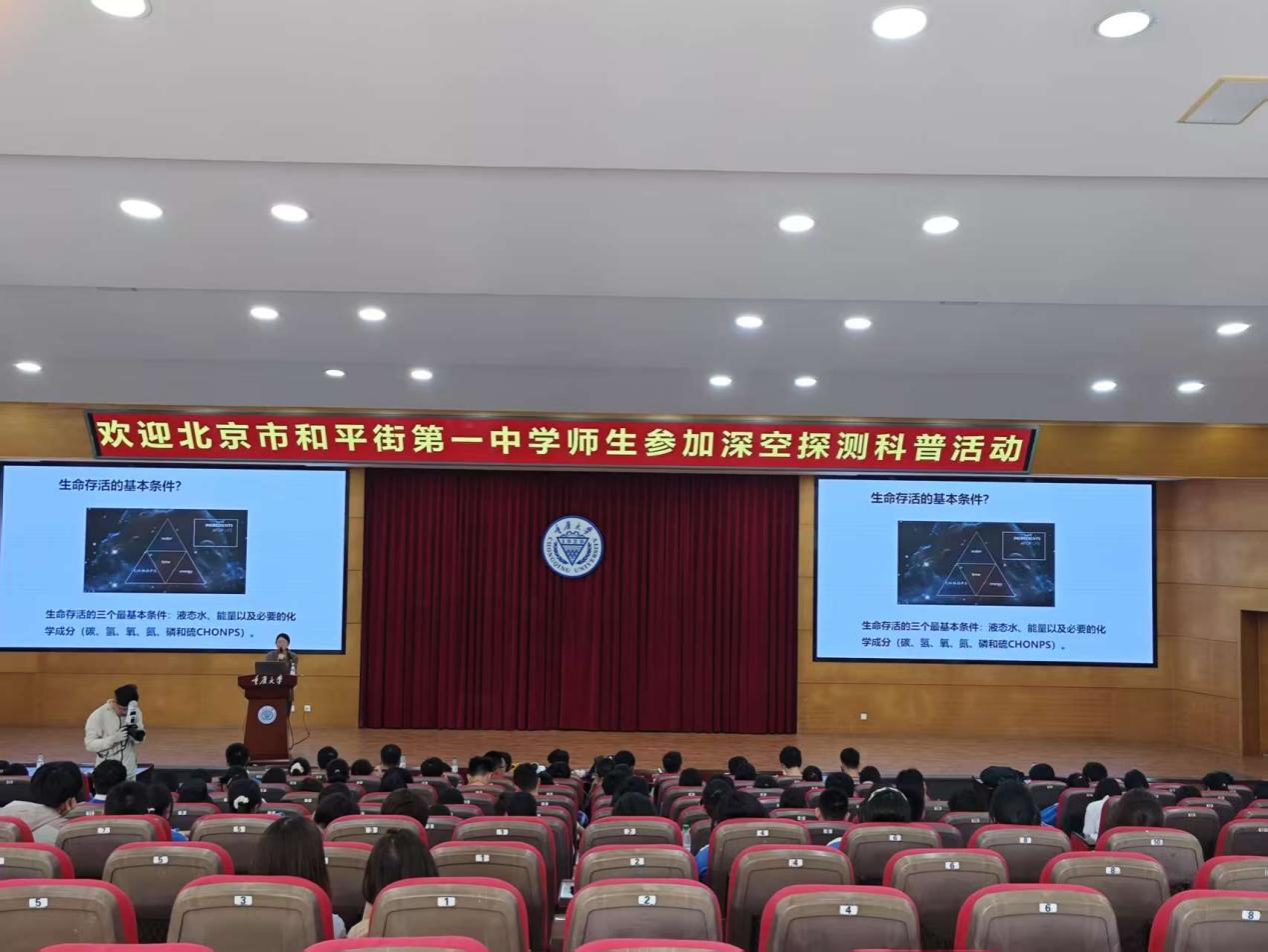 2025年4月8日,深空中心迎来了一场别开生面的航天科普盛宴。来自北京市和平街第一中学的176名高二学生齐聚中心,参与"深空探测太空科创系列-充气式太空舱"主题研学活动,开启了一场精彩的航天科技探索之旅。