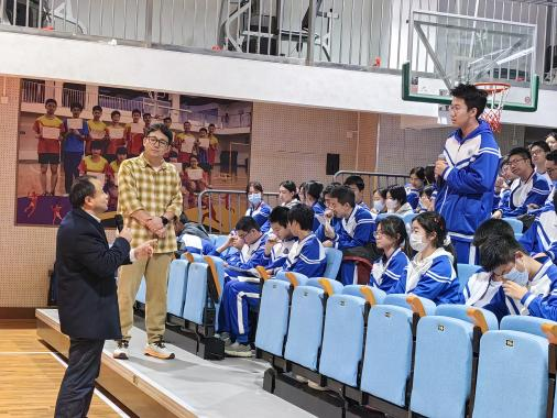 “一个国家的未来,就看年轻人。”讲座尾声,谢院士的嘱托掷地有声。随后的互动环节瞬间点燃现场气氛,高一学子们带着满脑子的思考与好奇纷纷举手,围绕月面实验的技术细节、未来航天发展方向等提出了诸多有深度的问题。面对同学们的踊跃提问,谢院士眼中频频闪过赞许的光芒。他耐心解答每一个疑问,从技术原理到研究规划,细致的回应让同学们倍感振奋,现场掌声此起彼伏。互动结束后,谢院士还为参与提问的同学送上了寓意着传承航天精神的特殊纪念礼物。